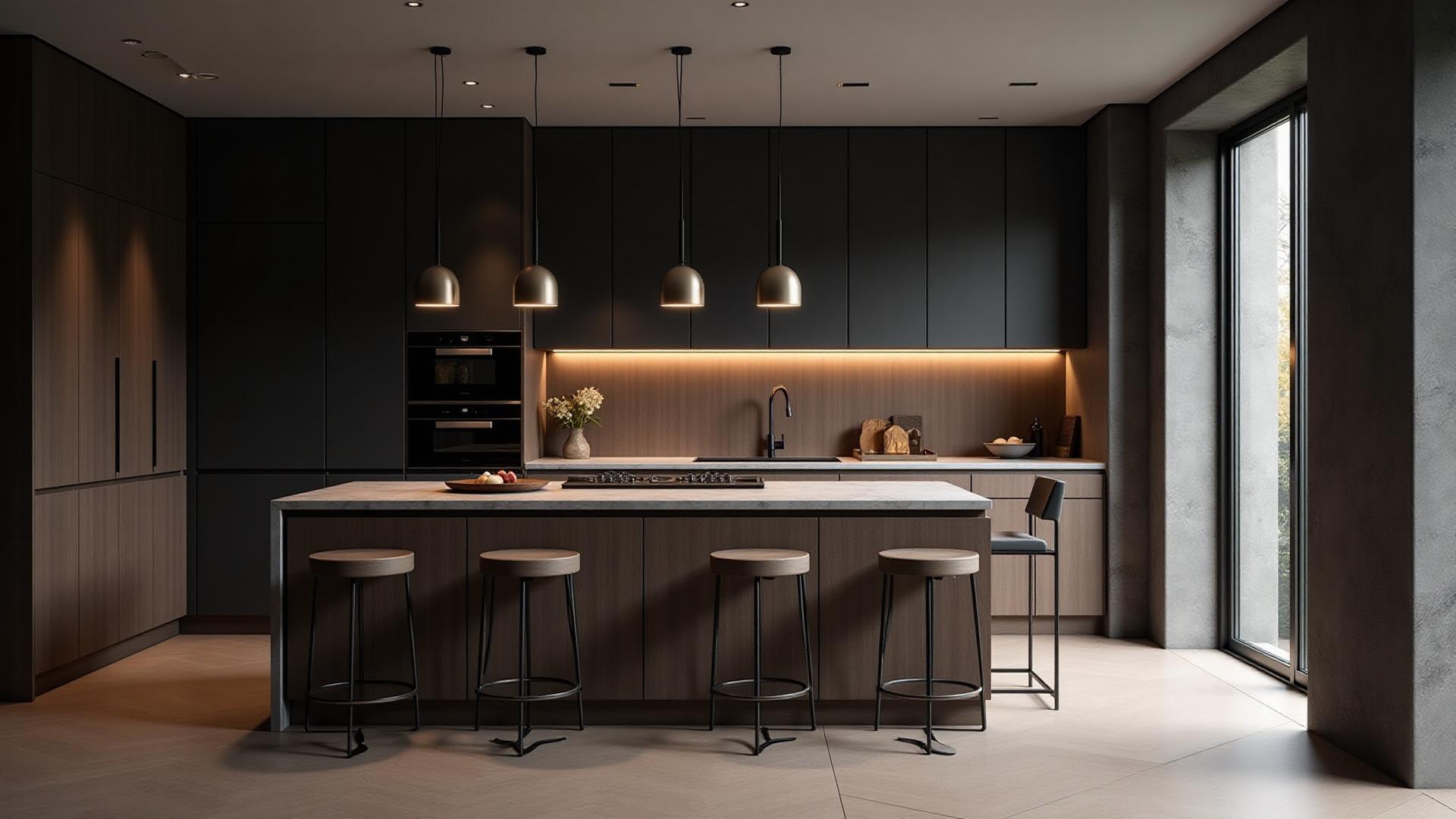Modernt kök med köksö i natursten